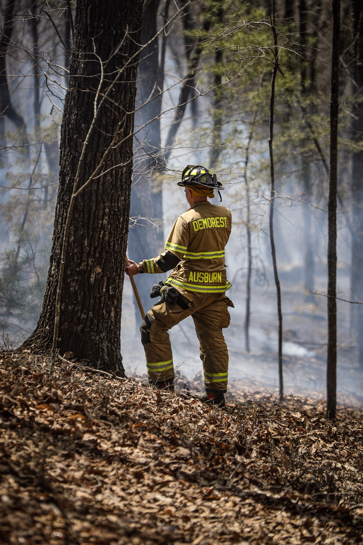 Georgia Forestry crews bulldozed a fire break around the burning woods and firefighters used a brush truck and hoses to wet down the vegetation. After three hours spent battling the blaze in steady, gusty winds, they determined the fire that burned 4.7 acres was contained and crews started clearing the scene. As they did, residents from Little Eagle Mountain Road and nearby neighborhoods thanked them for protecting their homes.