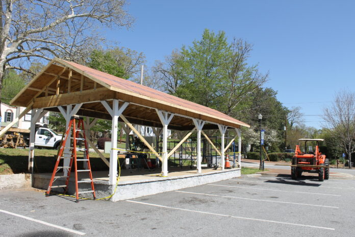 Improvements on the pavilion in downtown Demorest are now underway, with plans for the upgraded design to match the former city hall building (now Holden Oversoul) for a more uniform look.