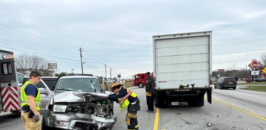 Three people were injured in a wreck near Cornelia Friday afternoon. The crash happened around 12:40 p.m. in front of the Habersham Village Shopping Center. A box truck and a Toyota sport-utility vehicle were involved in the wreck. An ambulance transported two small children and an adult to Northeast Georgia Medical Center in Gainesville. The … Continue reading Wreck involving box truck and SUV injures three in Cornelia
