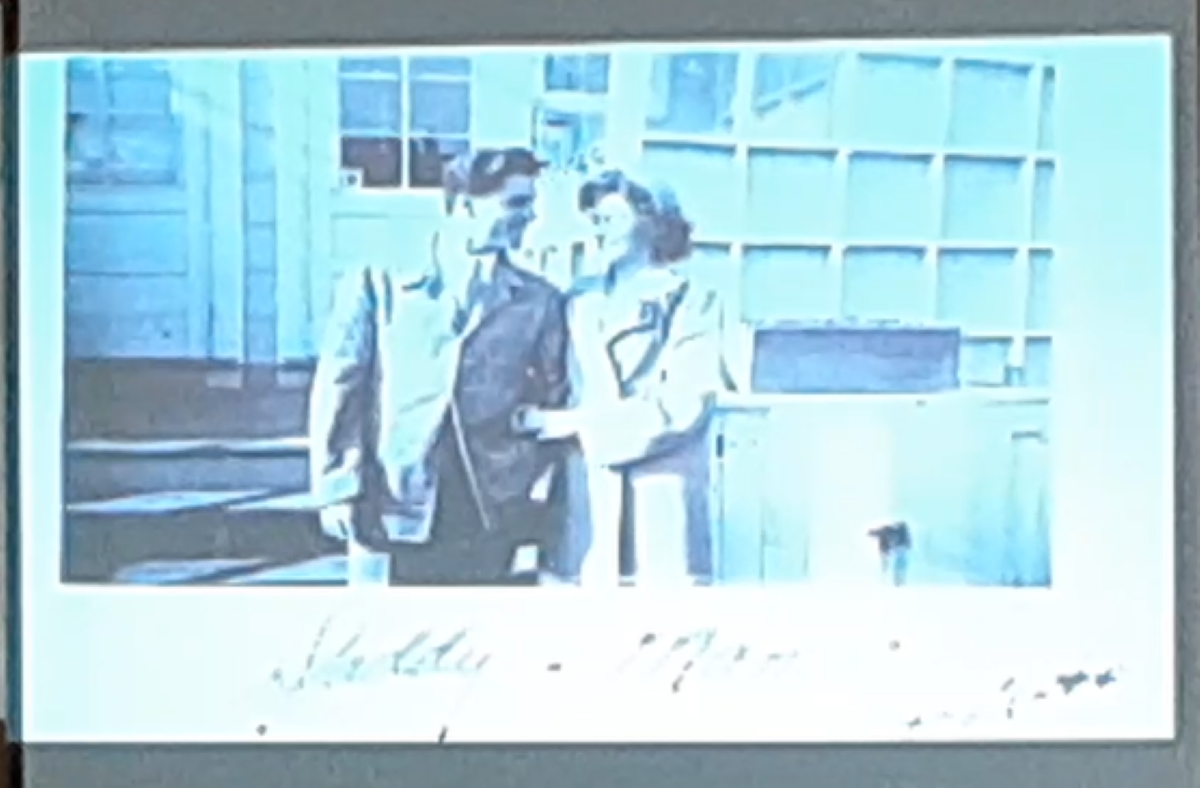 While at Ft. Meade, he tells the audience that the Army discouraged the men from fraternizing with the ladies in the area due to them going off to war. He didn’t listen. He went into a dance hall where he met a beautiful woman and danced with her. While dancing with her, the band played “People Will Say We’re in Love.” He told her, “This will be our song for the rest of our lives.” He was 19 years old. She was 17.
