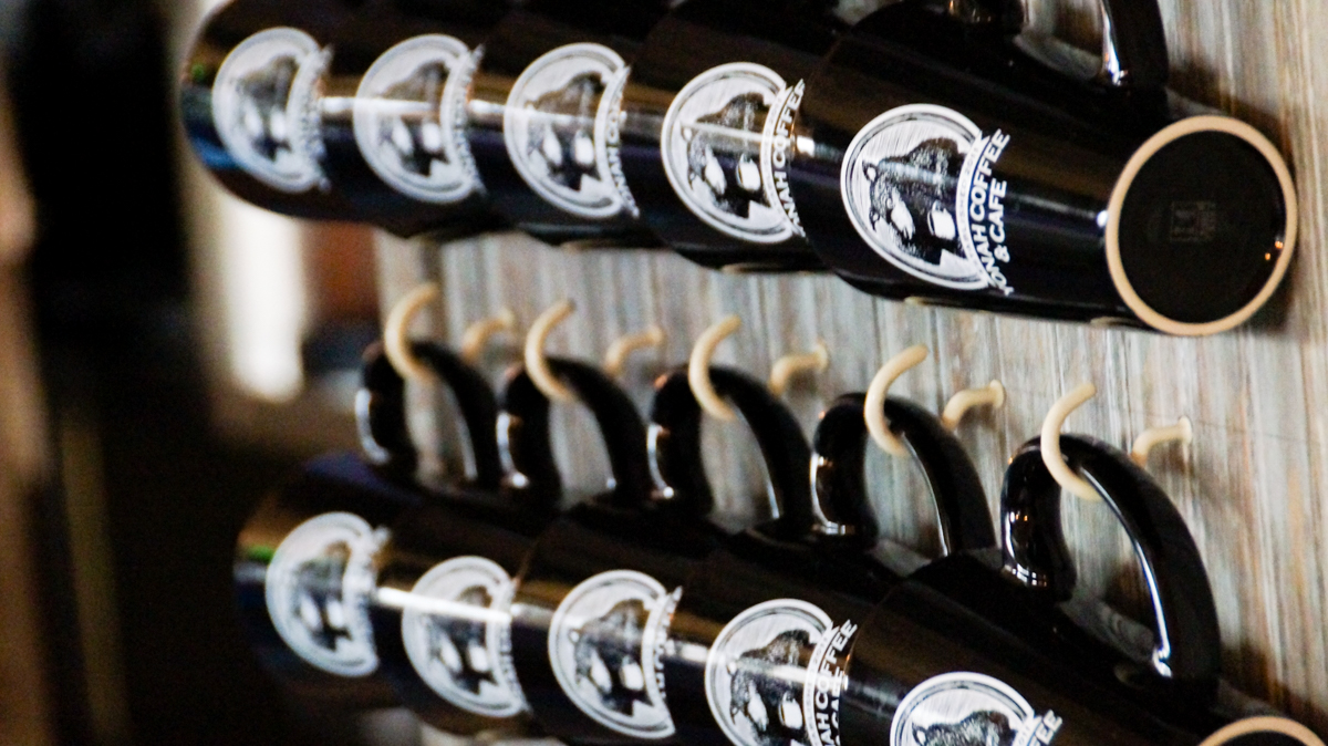 Coffee cups hang on near the barista station, ready to be in customers’ hands once again. (Hadley Cottingham/Now Habersham)